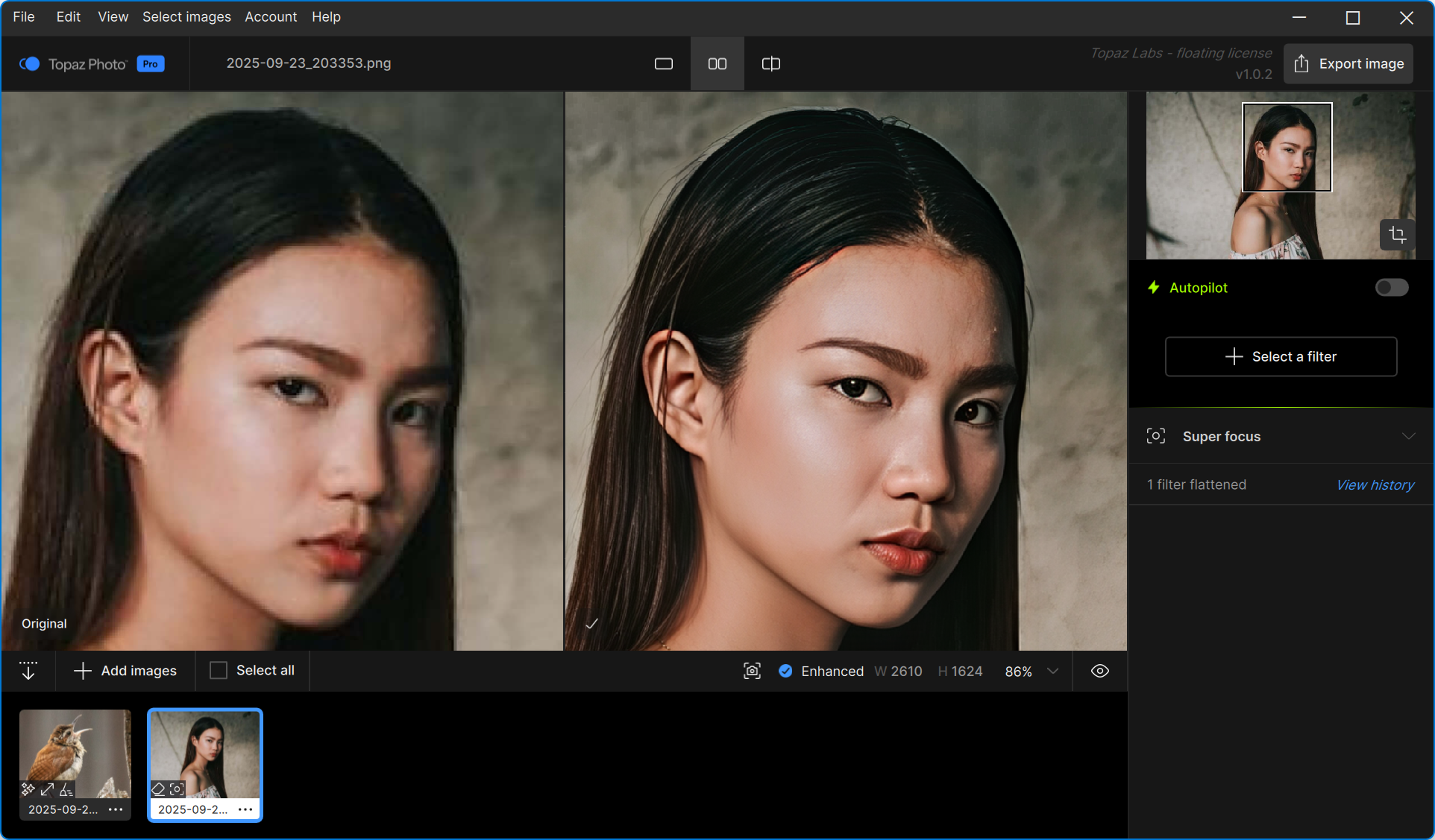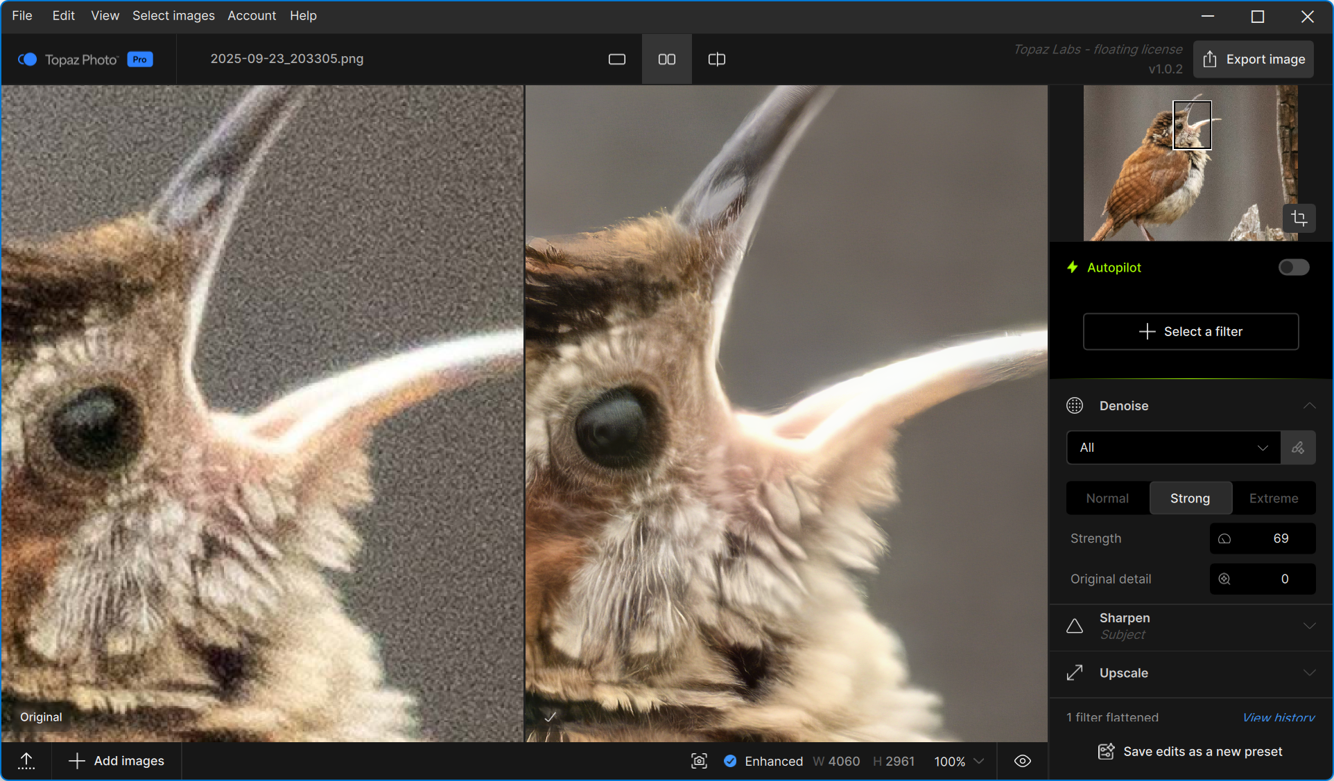 Topaz Photo – это интеллектуальное ПО для улучшения качества фотографий, которое позволяет с лёгкостью восстанавливать детали, улучшать фокус и корректировать уровни на каждом снимке. В вашем распоряжении 11 инструментов с поддержкой искусственного интеллекта (ИИ) для достижения идеального результата. А для быстрого старта можно просто положиться на автоматический режим "Автопилот".