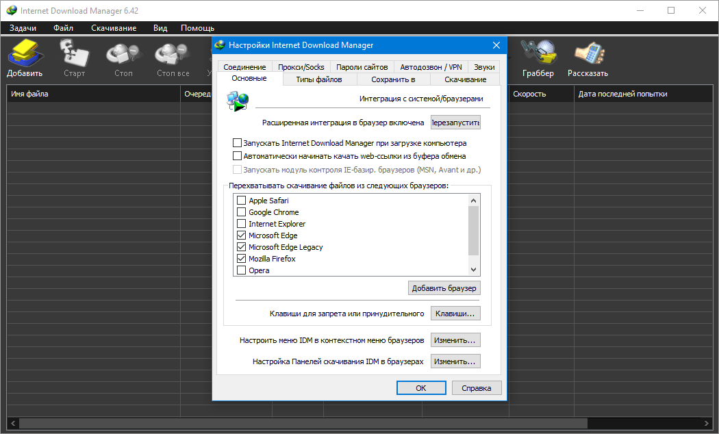 - Включить при запросе надстройку IDM integration (может потребоваться разовый перезапуск браузера,